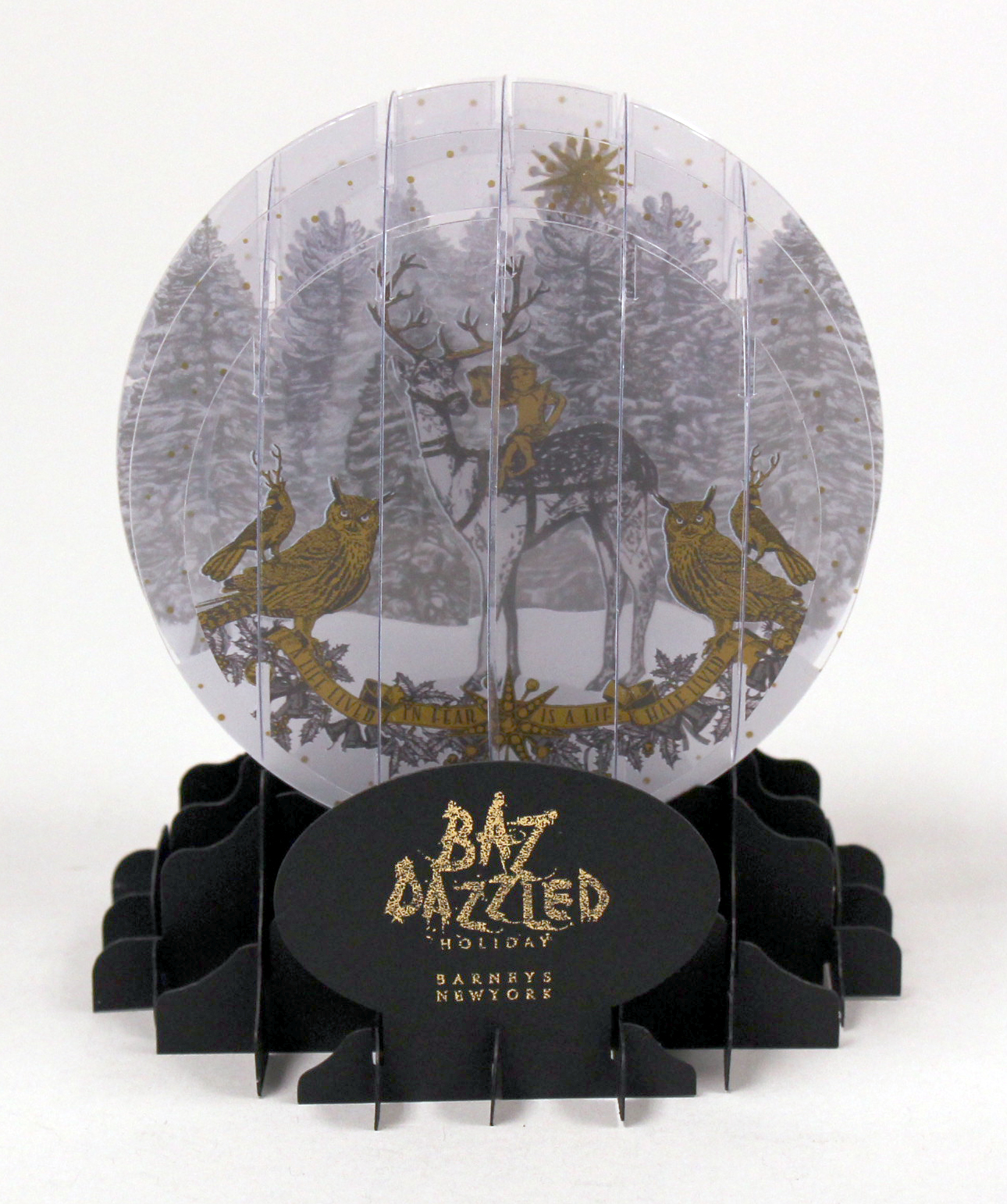 Direct mail pop-up card invitation to the unveiling event for the Holiday Windows of Barney’s of New York.